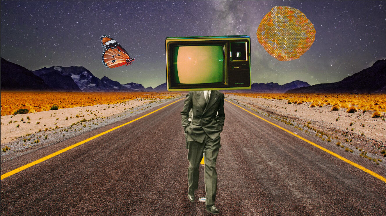 I started off with a collage piece I was working on just as an experiment. That birthed the idea of entering in and out of different worlds through different televisions.